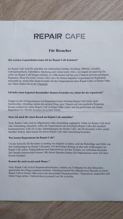Das Repair-Café-Erkelenz ist ein nicht kommerzielles Projekt.